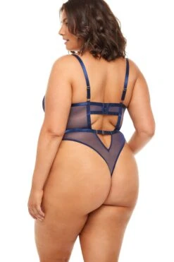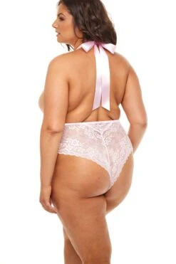 Plus Size Stretch multi pattern lace Teddy with long sleeves, high leg cut and decolletage neckline. Colors: Black, White. Size: One Size: Plus. Comes Boxed.