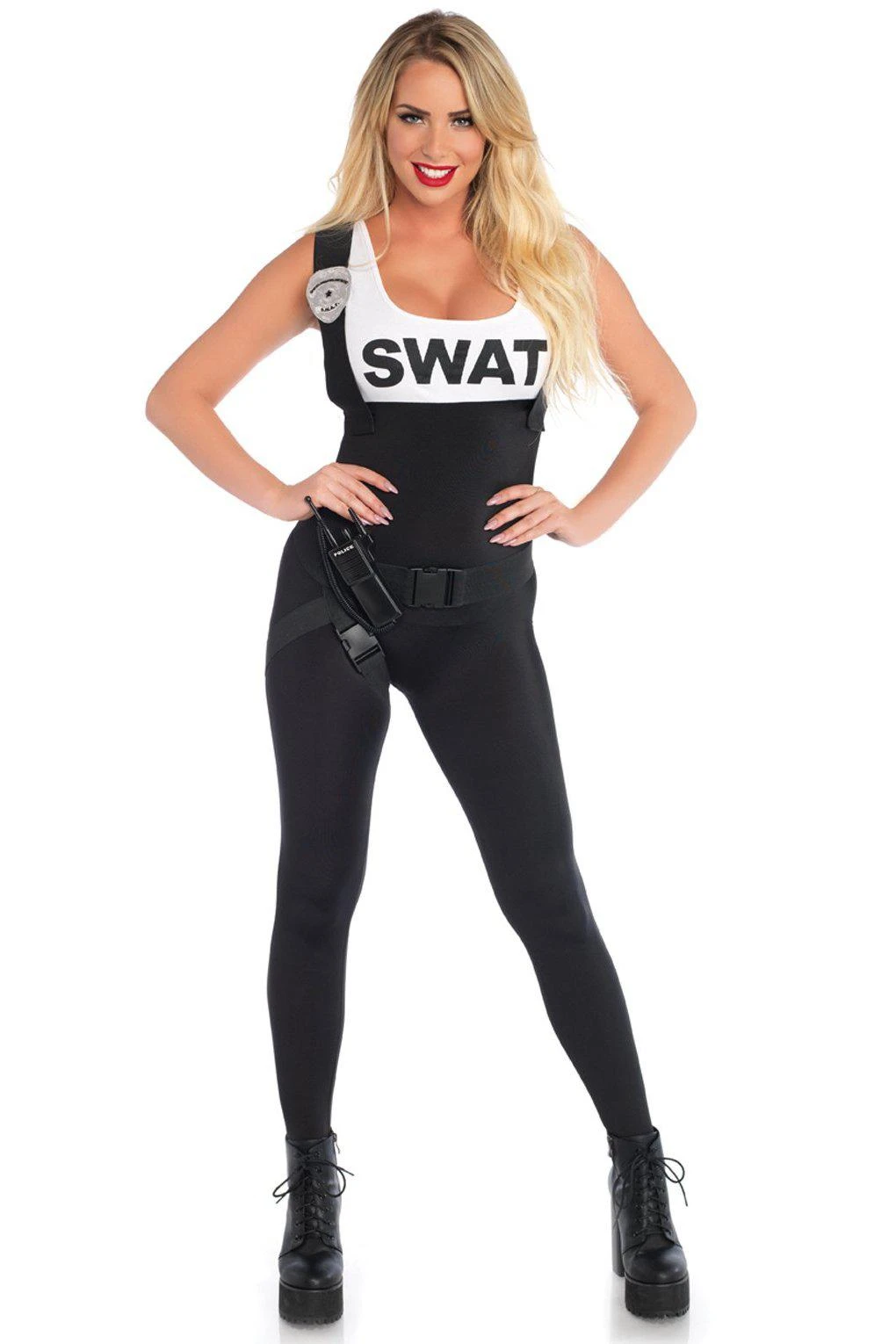 Leg Avenue 3PC.SWAT Bombshell,suspender jumpsuit, belt, and toy walkie talkie.