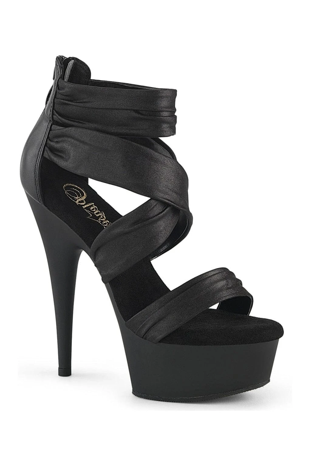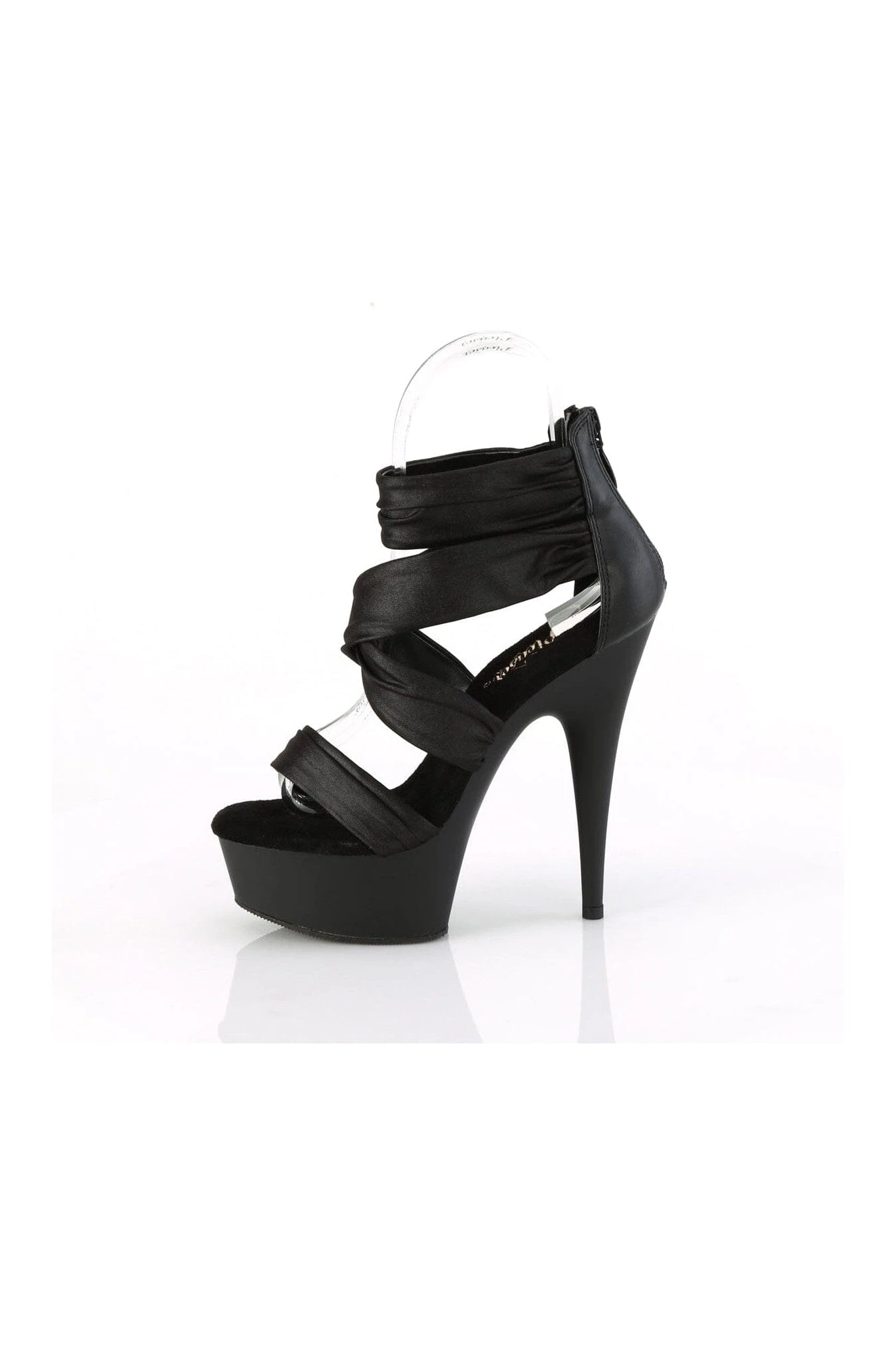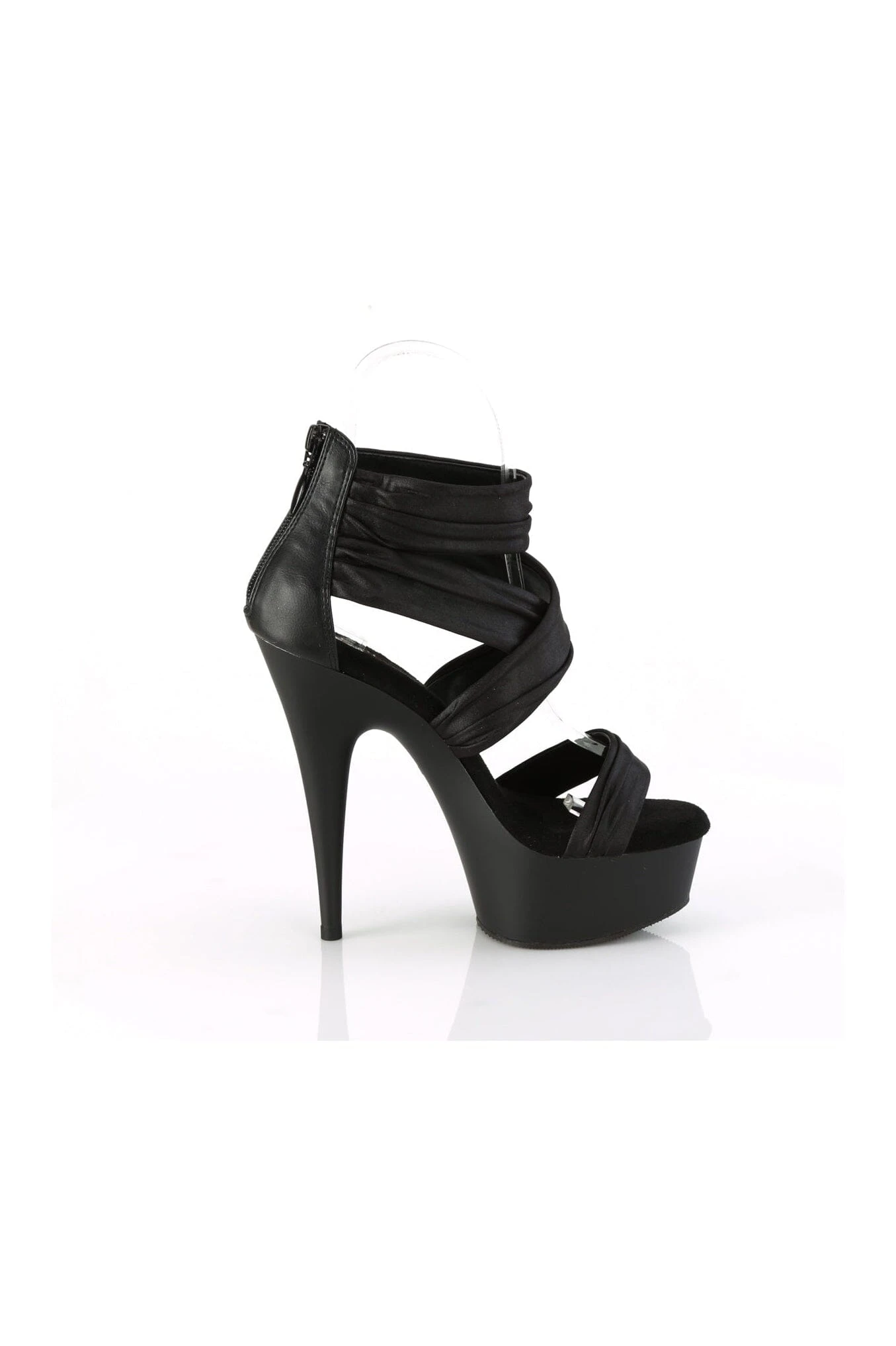 6″ Heel, 1 3/4″ Platform Ruched Ankle Strap Sandal, Back Zipper