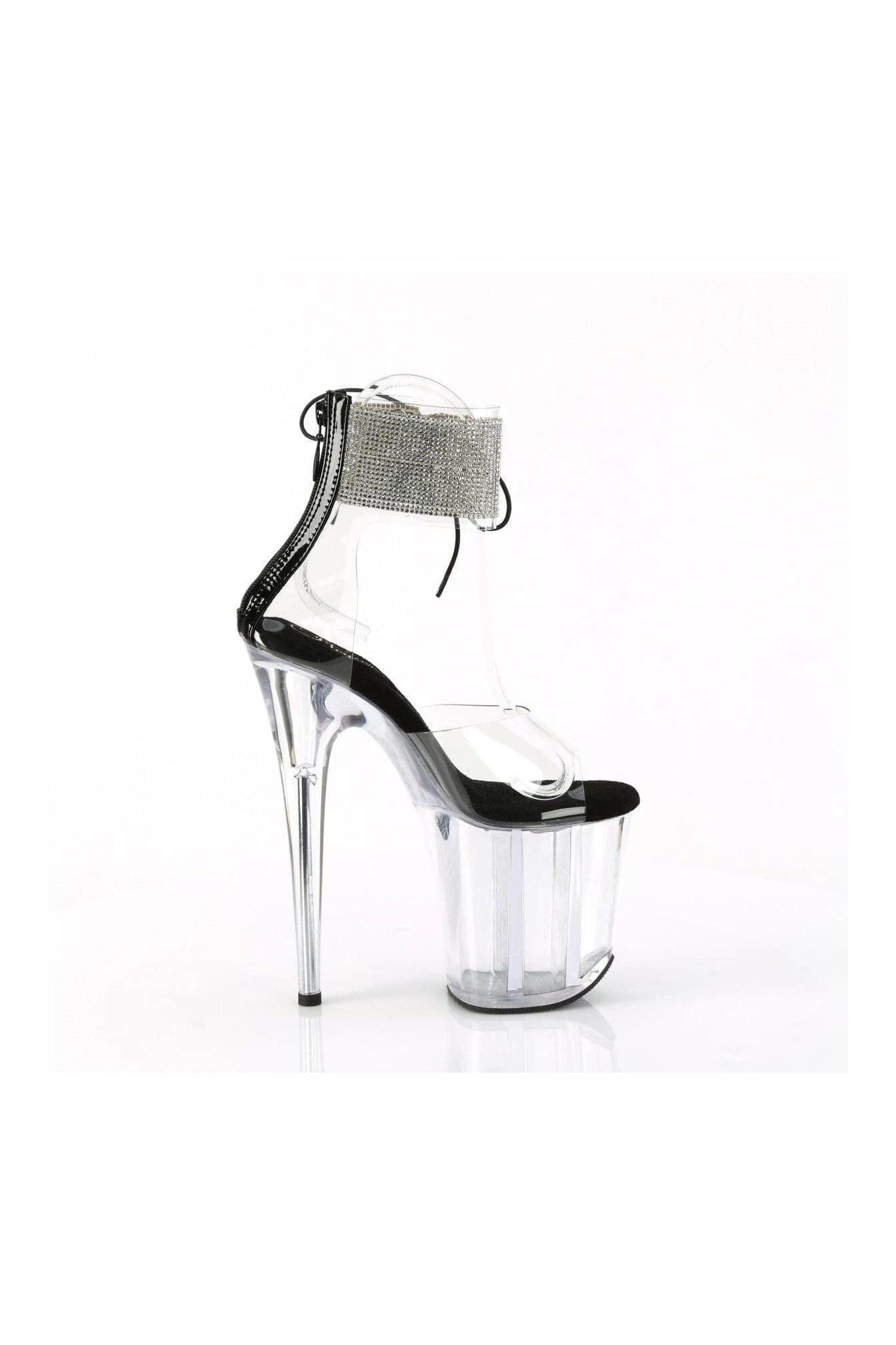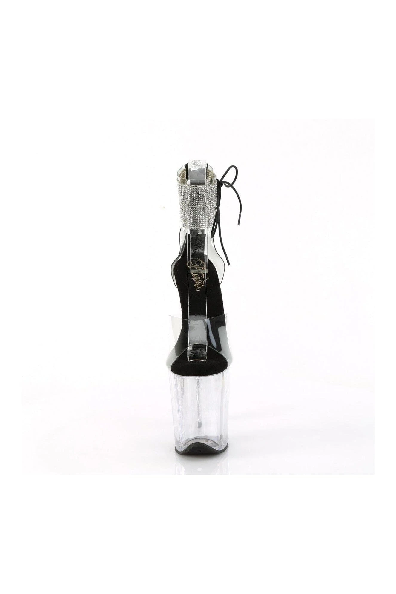 8″ Heel, 4″ Platform Rhinestoned Ankle Cuff Sandal, Back Zipper