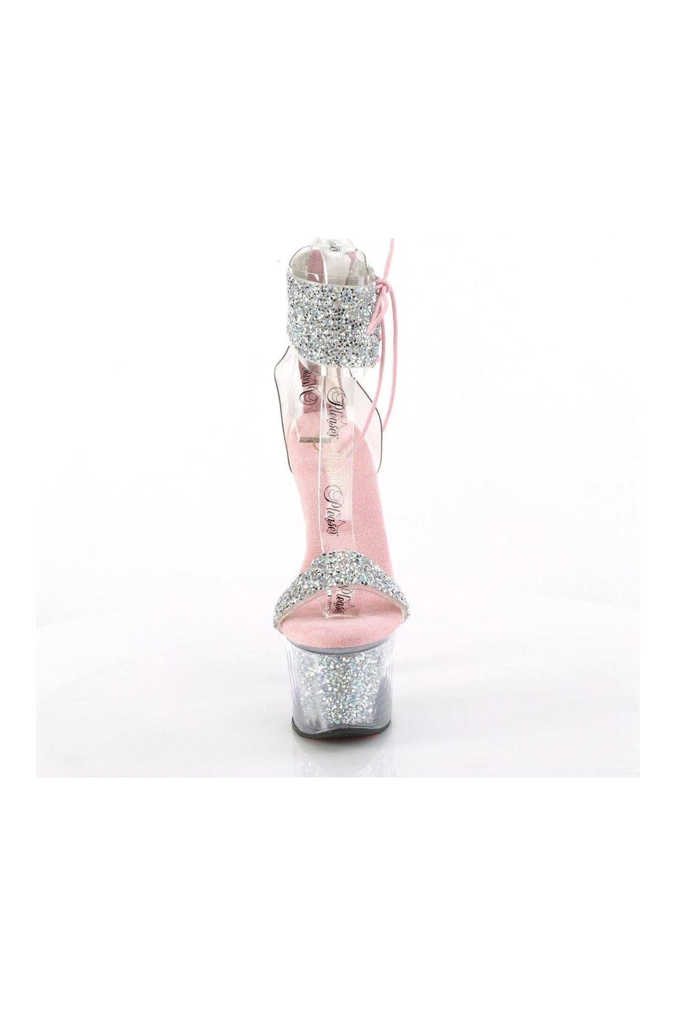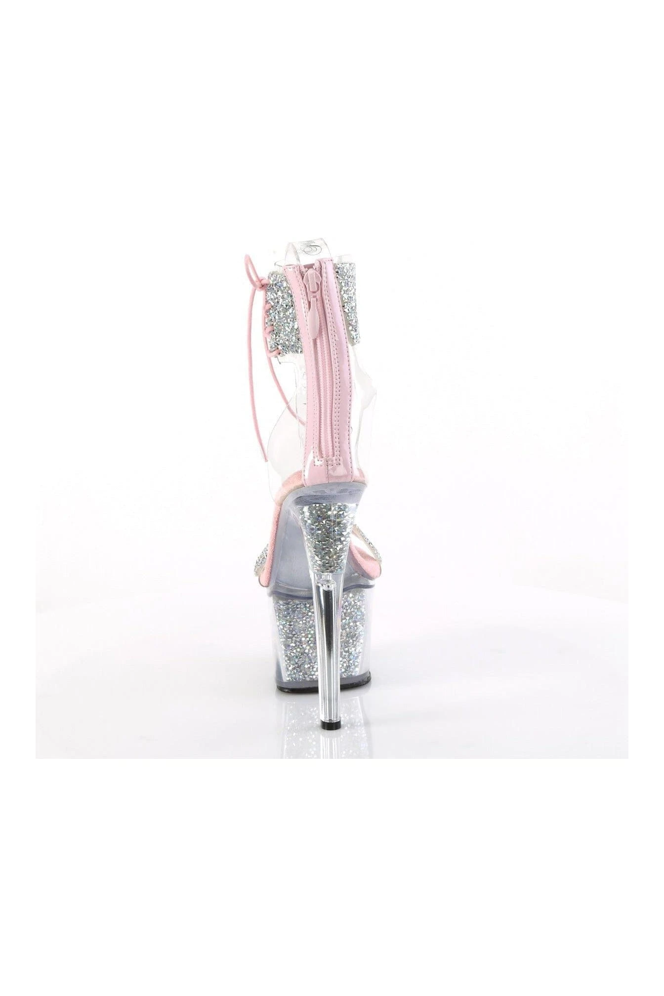 7″ Heel, 2 3/4″ Platform Ankle Cuff Sandal w/Rhinestone, Back Zipper