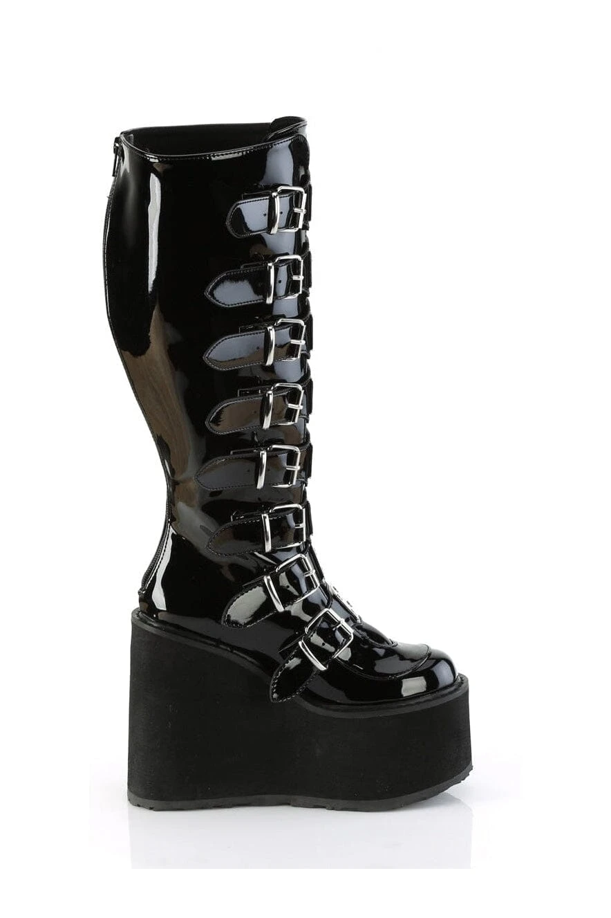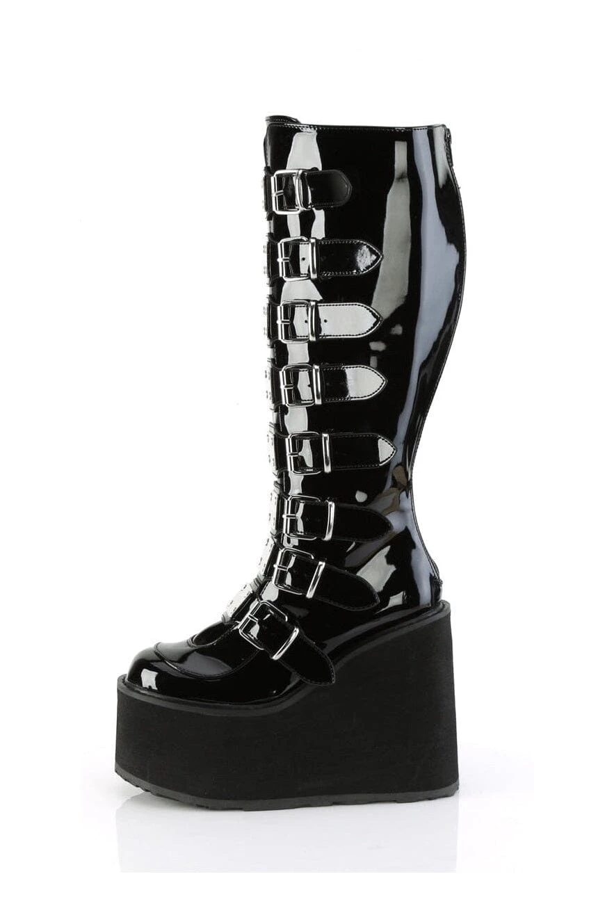 5 1/2″ Platform Wide Calf Knee Boot with Buckle Straps, Back Zipper