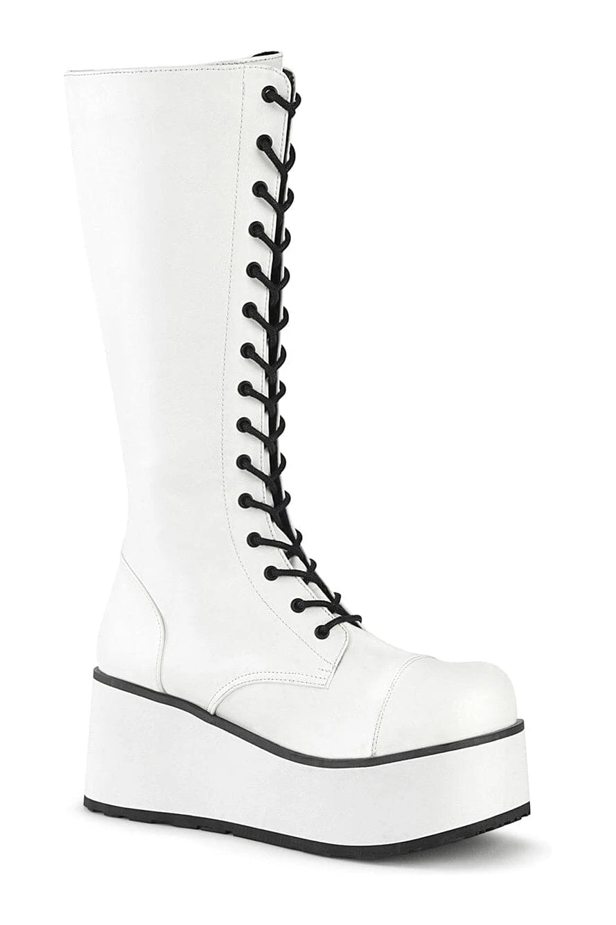 3 1/4″ Platform Lace-Up Knee High Boots, Side Zipper