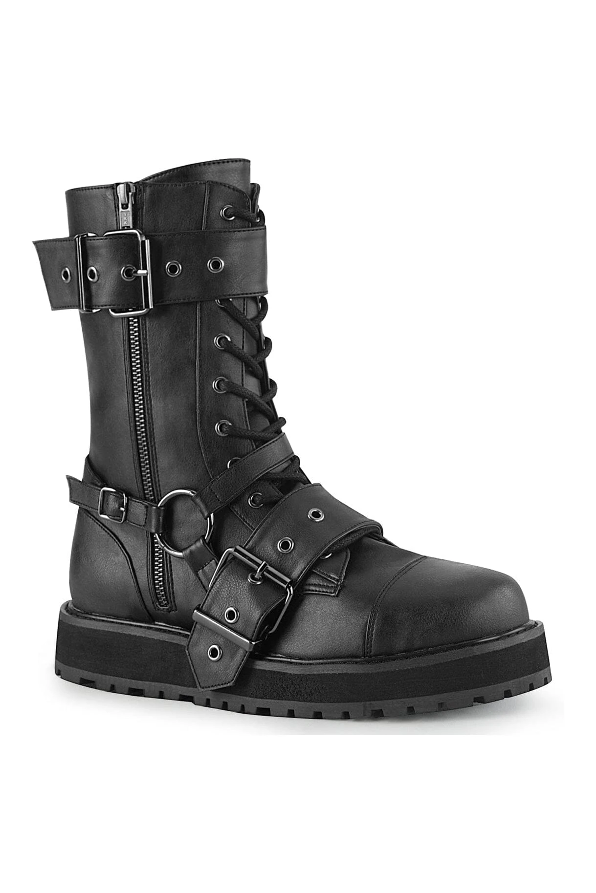 1 1/2″ Platform Lace-Up Mid-Calf Boot, Side Zipper