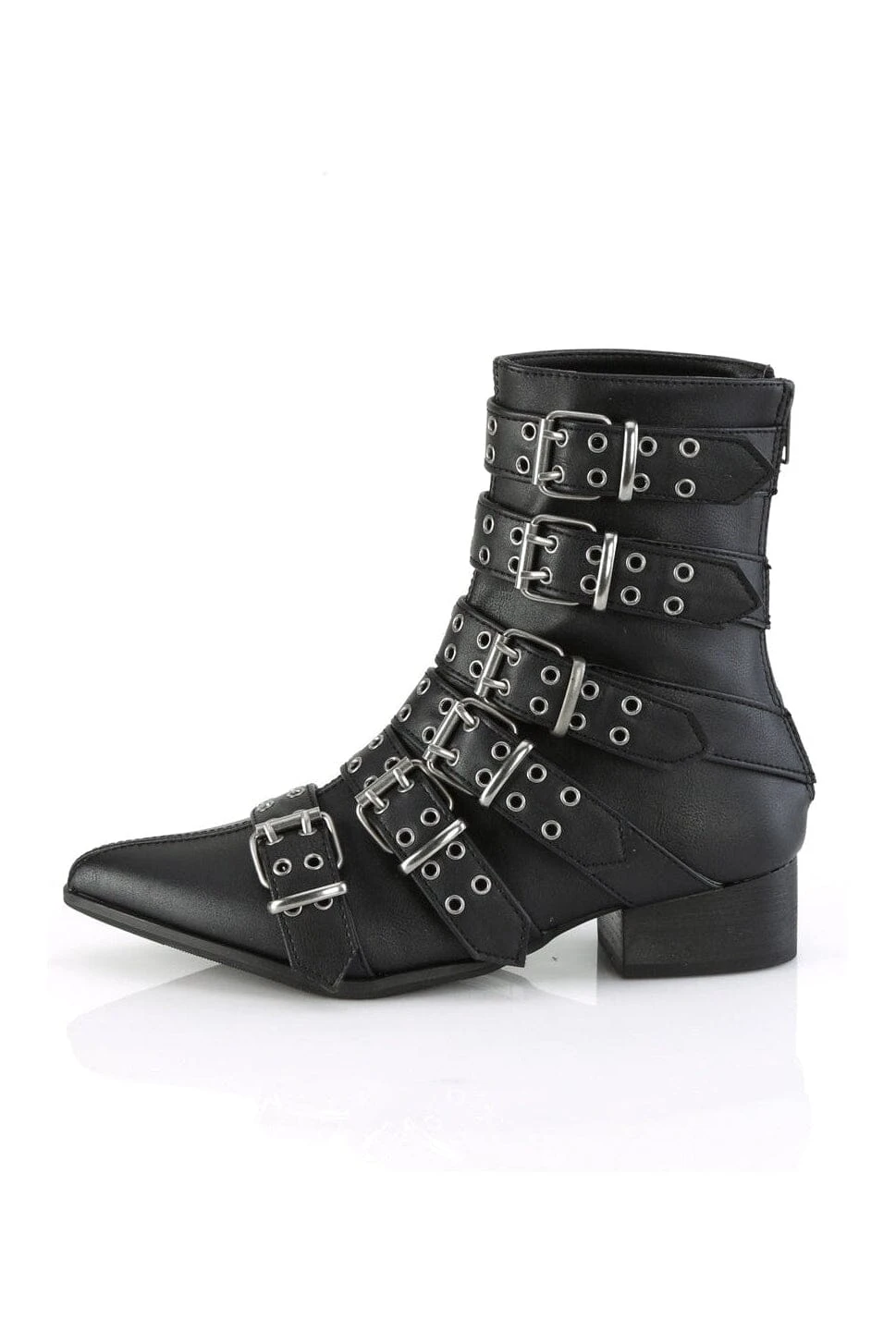 1 1/2″ Block Heel Pointed Toe Calf High Boot, Back Zipper
